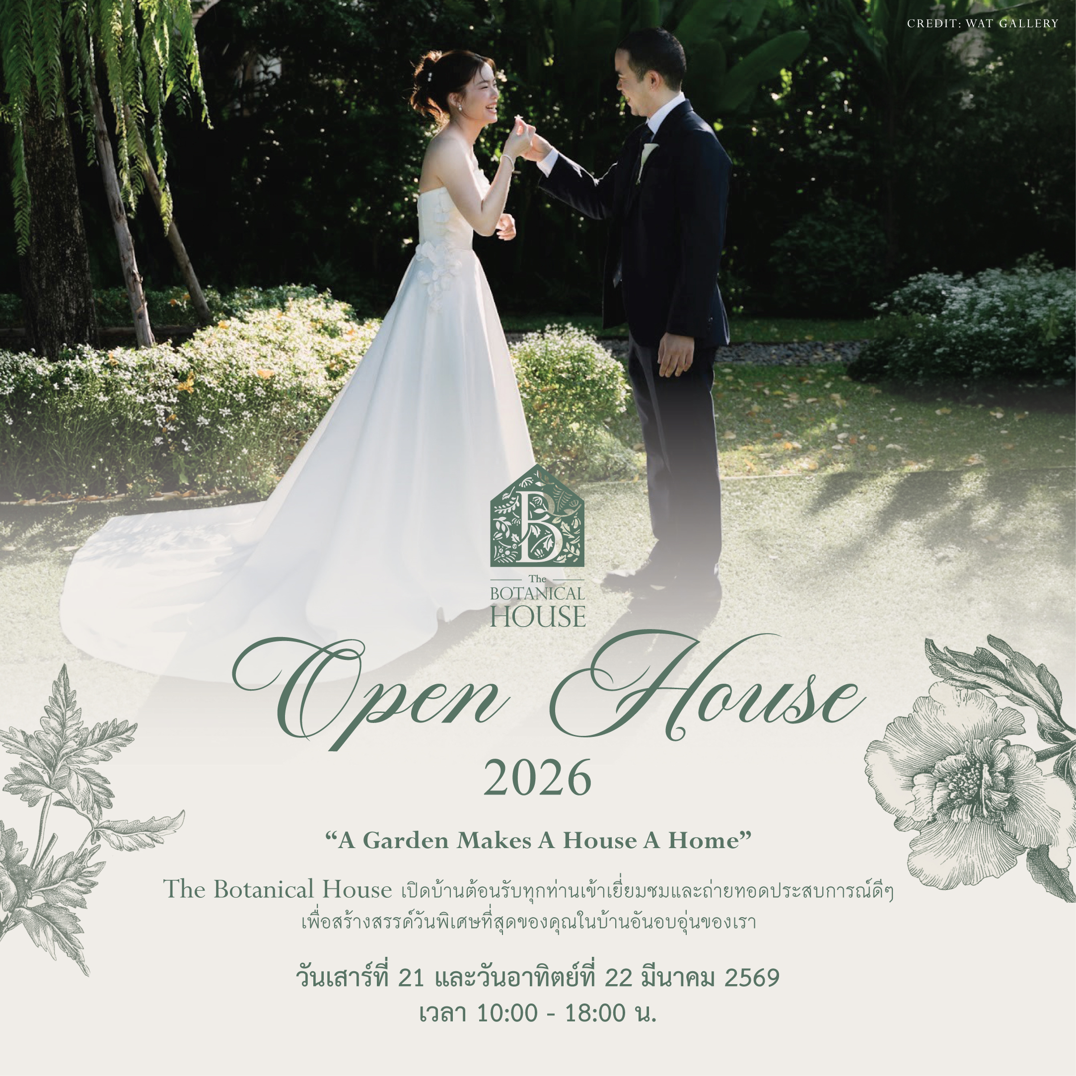 Don’t miss out on meeting our specialists at The Botanical House Open House 2026 to make a dream wedding beyond compare in the intimacy of our private garden home setting at The Botanical House Bangkok & enjoy our exclusive wedding package (Starting from THB 199,990 net for 50 guests).